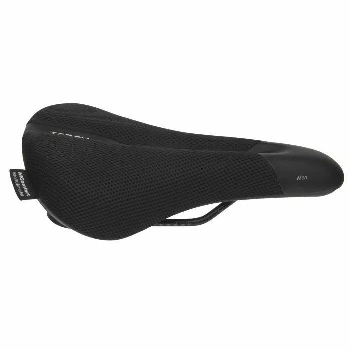 Der klassische Fisio mit neuer ClimaVent-Oberfläche eignet sich sehr gut für den Einsatz bei Langstrecken und Touren. Das offene ClimaVent Membran-Gewebe sorgt für eine permanente Luftschicht zwischen Körper und Satteloberfläche – optimales Sitzklima ist garantiert. Die breite Auslegung des Sitzbereiches ist ideal für die eher aufrechte Sitzposition. Hier lastet ein großer Teil des Körpergewichts auf den Sitzknochen. Durch die spezielle Grundform des Sattels in Verbindung mit dem 3 Zonen-Komfortprinzip und Gel-Einlagen bietet der Fisio eine gute Entlastung im Damm- und Genitalbereich sowie eine sehr gute Druckverteilung im Sitzknochenbereich.
